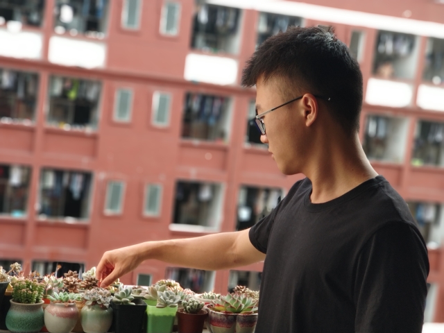 现在就读大四的孙杭波有着自己奋斗的目标,每天就是图书馆、食堂、寝室三点一线的生活,但还是每天坚持去打理一下阳台的多肉,“做自己喜欢的事情,一点也不觉得累。我觉得多肉已经成为了我生活中不可或缺的一部分,他是我的朋友,在我奋斗的路上陪伴着我,鼓舞着我”,对于他而言,在学习疲惫后浇水施肥是最简单的快乐,他打理的是阳台的小花园,驾驭的是心灵,有小花园相伴,让一年的四季都变得那么的美好。