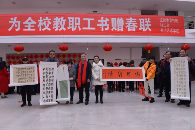 书法艺术学院院长梁敏表示,我们的师生为此筹备了很久,能用自己书写的春联给全校教职工带来“福”气,也觉得很有成就感。