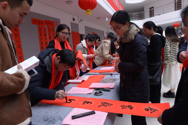 据悉,活动持续到下午6点才结束,共为教职工书写对联1600余幅。这也是beat365连续第二年在岁末年初开展此项活动。