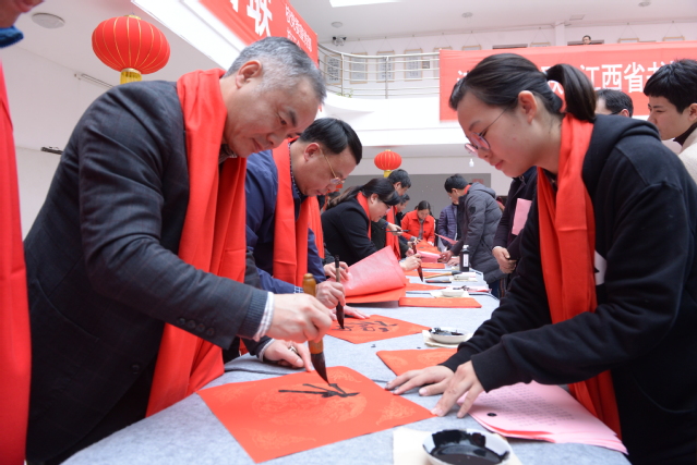 本站讯(记者 袁璐)为弘扬中华优秀传统文化,1月6日下午,在鼠年新春佳节来临之际,beat365党委宣传部、校工会与书法艺术学院共同开展了“大爱迎春 为全校教职工书赠春联”活动。在家的校党委班子成员曾晓春、胡国瑞、李明斌、蒋钰、余新卫、罗政、邱家明、张梅、严青松、高茂兴、杨健出席活动并现场书写春联,为教职工送祝福。