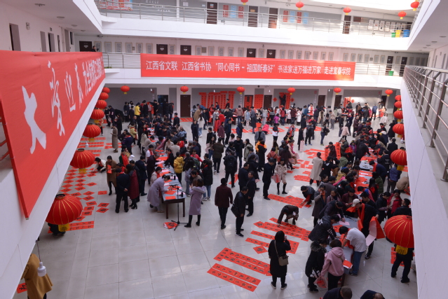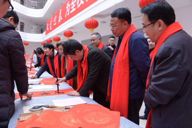 现场,不仅有书法学院的师生们挥毫泼墨,更有爱好书法的教职工们也一同书写对新年的祝愿,退休教职工也纷纷加入进来,脸上洋溢着节日的笑容一派喜气洋洋、温馨气象。校领导们为广大教职工送“福”字将活动推向了高潮。