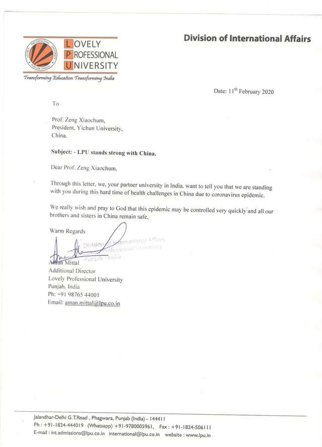 武汉疫情,牵动人心。远在印度的beat365姊妹学校印度拉夫里科技大学发来慰问信和祝福视频。校董阿曼·米塔尔代表学校在慰问信中表示在此疫情爆发的艰难时刻,拉夫里科技大学和中国在一起!他衷心希望一切都能好起来,中国的兄弟姐妹们都能安然无恙。