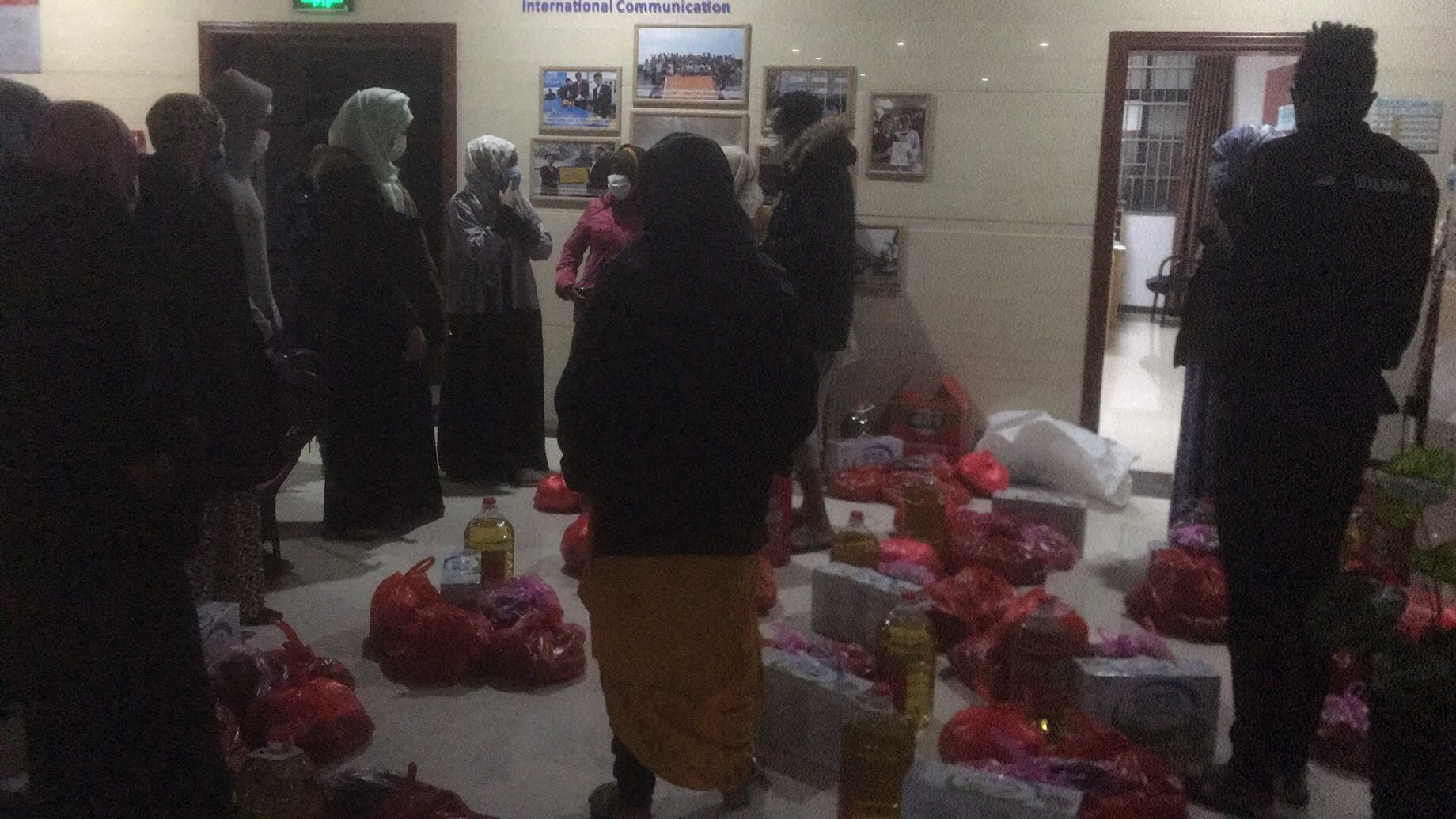 (图为李亚力老师分发留学生生活物资)
