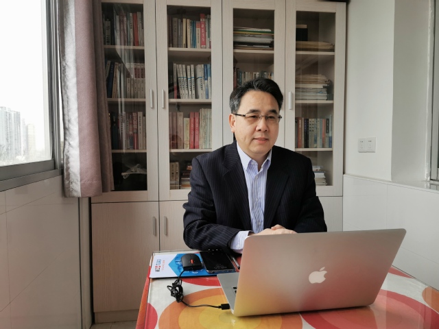 上午9点50分,李明斌准时加入文传学院汉语言文学专业19级(5、6)班的腾讯课堂,在线聆听了曾莉莉老师的《现代汉语》直播课。开课前,李明斌还与同学们进行了互动,了解他们对线上学习的体会和建议,以及疫情防控期间在上课方面遇到的实际困难。他对同学们在疫情防控期间坚持学习的良好精神状态表示了赞许,并对同学们提出了三点要求:一是要保持良好作息时间;二要积极上好线上课程;三要自觉坚持线下学习。