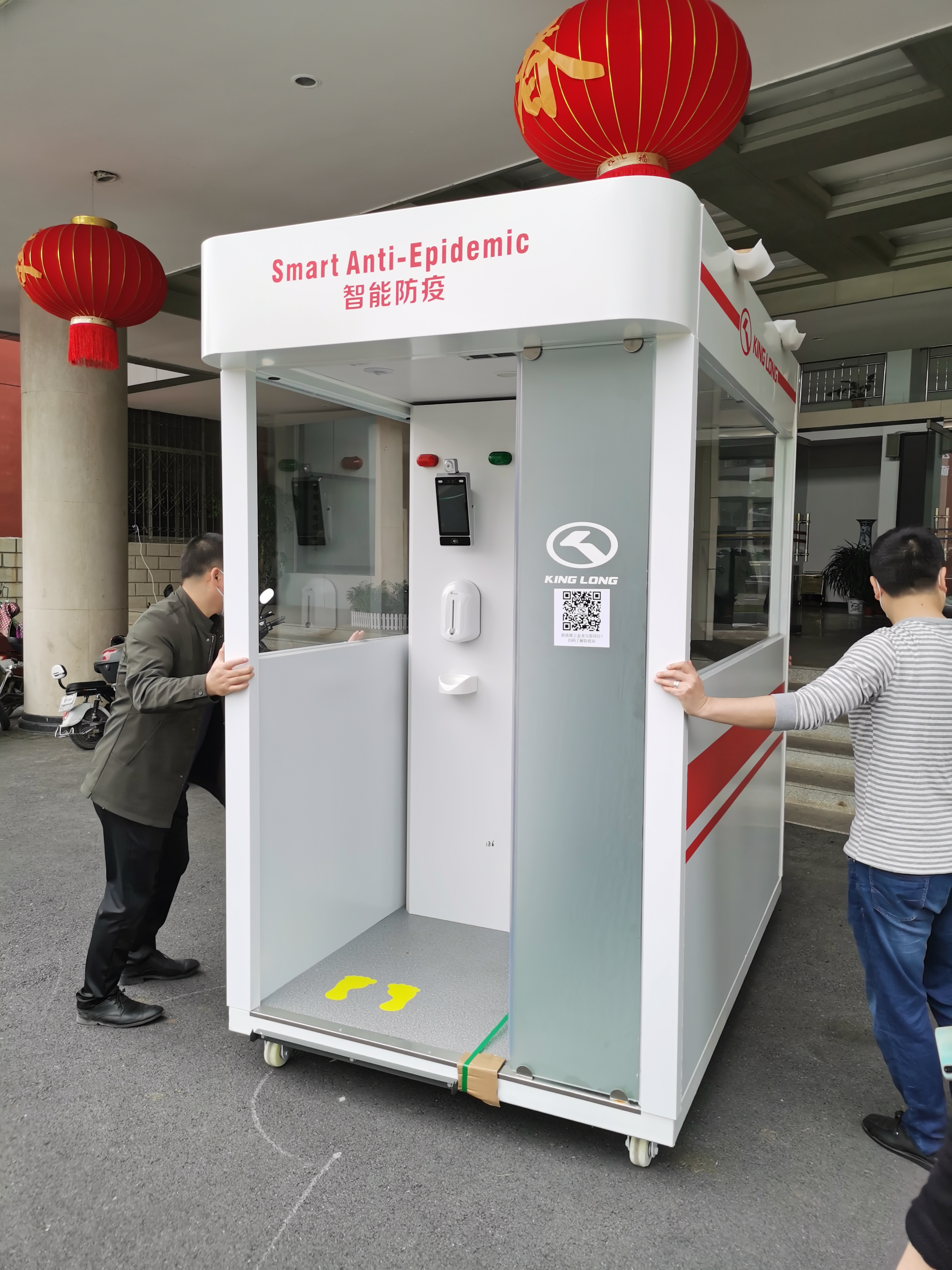 这台智能防疫设备是出入口防疫监控综合管理平台,全流程非接触智能互联操作,有体温检测、口罩佩戴侦测、360度消毒等功能。这台设备将有助于beat365进一步做好师生返校的防疫检测工作。