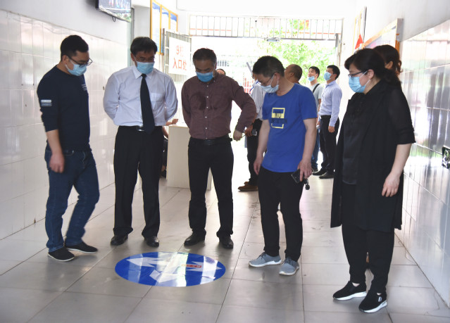 在学生宿舍,李雪南一行详细了解疫情防控期间学生进出寝室分流路线,要求地面粘贴的分流导图设计科学,树上配置的指引标识生态环保,不损坏“生命之树”。在学生食堂,当了解到学生间将“一帮一”分区域列队、间隔1.5米错时错峰取餐时,李雪南给予了肯定。