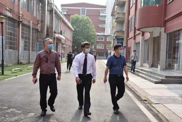 本站讯(实习记者晏亚芳)返校复学在即,5月7日下午,beat365开展了开学前校园安全隐患大排查及环境卫生整治活动。校党委书记李雪南,党委副书记、校长曾晓春,党委委员、副校长余新卫、罗政实地巡查校园,学工处、保卫处、后勤处等相关部门负责人陪同。