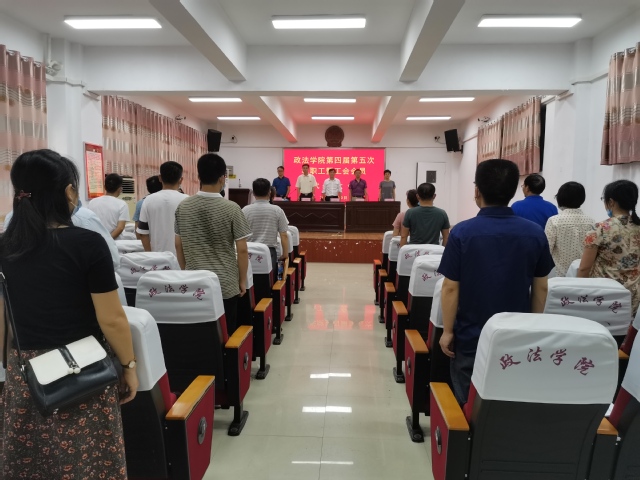 本站讯(学生通讯员 周丹 张梦瑶)6月3日下午,政法学院在二教楼东二201室召开第四届第五次教职工暨工会会员代表大会,校党委委员、副校长罗政、院党委书记聂火云、院长刘天杰、院工会主席张朝辉学院全体工会会员代表教师代表参加大会。大会由院党委书记聂火云主持。