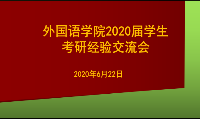 本站讯(外国语学院 供稿)6月22日下午,外国语学院通过腾讯视频顺利召开了2020届学生考研经验交流会。16级考研学生代表、17级考研同学在线参加会议,院长高芸、副院长袁翔华,教务科相关老师以及部分考研指导教师出席了本次会议。