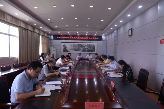 本站讯(记者 袁璐) 7月3日下午,校党委书记李雪南在党委会议室主持召开统战工作暨民族宗教工作专题党委会。在家校领导出席会议,副校长梅光泉列席会议,相关部门负责人列席会议。