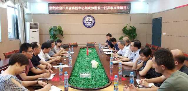 本站讯(医学院 供稿)7月10日下午,江西省疾病预防控制中心刘成伟所长携丰城市疾病预防控制中心周红明主任一行6人来beat365医学院交流。医学院院长易少波、副院长李春明、党委副书记刘斌及相关科室负责人、预防医学专业教师出席交流会。