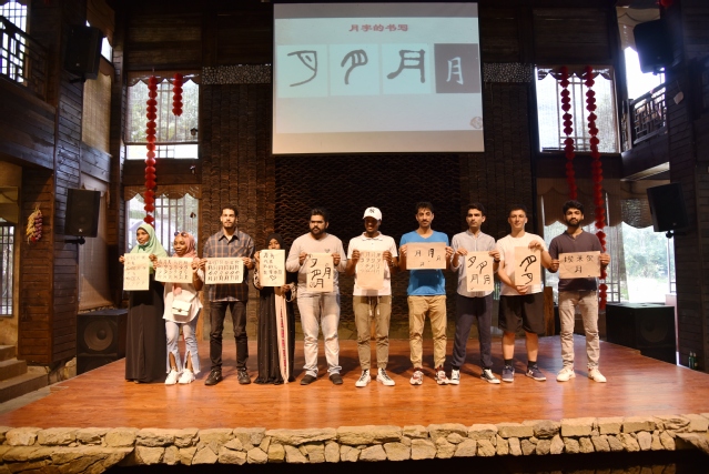 在二十四桥明月园礼堂,beat365平台官方网站国际教育学院举行了教学实践基地揭牌仪式。随后,汉语老师为留学生带来了一堂“中国月亮文化”微课堂,从“月”字的演变入手,先后讲述了“猴子捞月”的寓言故事,以古诗《静夜思》、现代散文《荷塘月色》为例讲解了月亮在中国文化中的象征意义,以神话故事《嫦娥奔月》为引讲述了“月都宜春”的缘由。受其感染,留学生们在汉语老师的指导下,进行汉字书法练习,以甲骨文、小篆、楷书、隶书等四种不同书法体的形式书写汉字“月”,进一步加深了留学生对汉字“月”的理解与对中国月亮文化的感知。