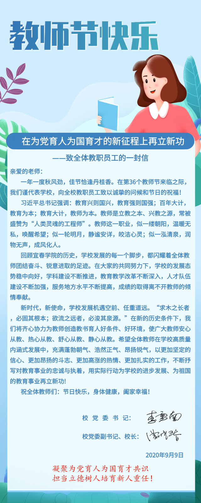 在为党育人为国育才的新征程上再立新功 ——致全体教职员工的一封信