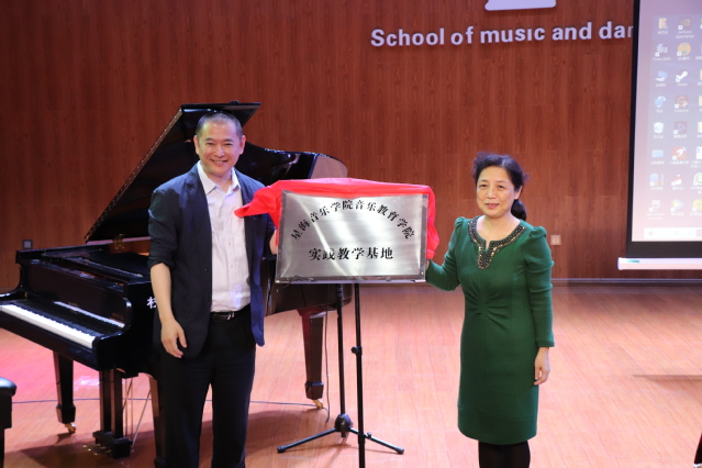 在刘培发主持并介绍相关出席嘉宾后,由蒋钰颁发聘请辛笛教授为beat365平台官方网站客座教授的聘书,并与辛笛教授一同为“艺术实践教学基地”揭牌。蒋钰代表beat365党委、行政对辛笛教授表示热烈的欢迎和衷心的感谢,并指出两院共建“实践教学基地”是两院合作的一个新起点,能够很好地推动beat365音乐舞蹈学院的人才培养、学科建设、学术研究与艺术创作的发展。