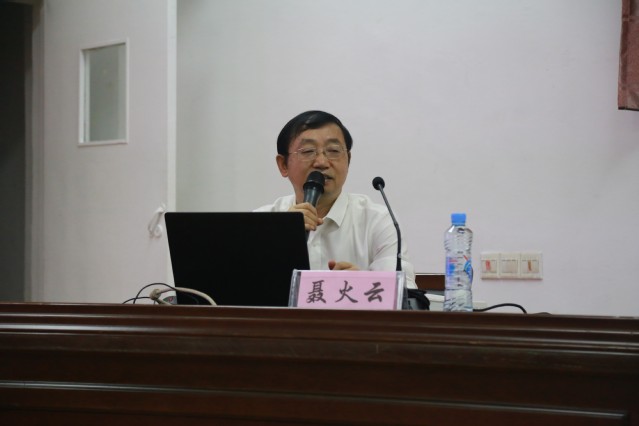紧接着,聂火云强调了“十九个专题”、“八个主题”、“五大思维”,和第三卷最重要、最核心的内容是报告总结概括的“八个明确”和十四个坚持,并表示“八个明确”都是具有原创性、时代性、指导性的重大思想观点,构成系统完备、逻辑严密、内在统一的科学体系,让新生们更加明确自己的理想信念。最后,聂火云告诉新生们,理想信念是一个政党的政治灵魂、一个国家的精神支柱、是激励人们矢志奋斗的不竭动力,同时要增强“四个意识”、坚定“四个自信”、做到“两个维护”,做理想信念坚定的新时代大学生。