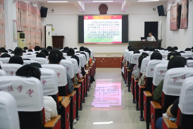 本站讯(学生记者: 江艳花 彭美倩)为弘扬习近平新时代中国特色社会主义思想,加强对新生们理想信念和社会主义核心价值观的教育,提高新生们的思想道德素质,9月26日上午,政法学院在二教楼模拟法庭开展以“加强社会主义核心价值观教育”为主题的思想讲座。此次讲座由政法学院党委书记聂火云主讲,团委书记刘臻彧出席,政法学院20级全体新生参加。
