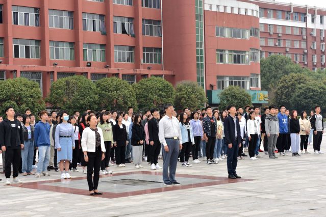 本站讯(学生记者:喻轮奇)十月鲜花吐芬芳,普天同庆华夏情。为庆祝中华人民共和国成立71周年,进一步加强爱国主义教育,厚植爱国主义情怀。10月1日清晨,beat365在主教楼音乐广场举行升旗仪式。beat365校党委委员、副校长邱家明出席升旗仪式,部分师生代表参加此次升旗仪式。