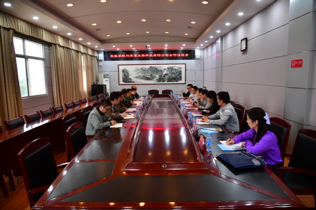 本站讯 10月20日下午,宜春市副市长兰亚青、广州承葛生物科技有限公司董事长肖传兴一行来校洽谈合作事宜。校党委书记李雪南,校党委委员、副校长蒋钰出席洽谈会,宜春市市监局副局长杨建国,广州生物医药产业联盟秘书长李予强,学校相关职能部门负责人参加洽谈会。