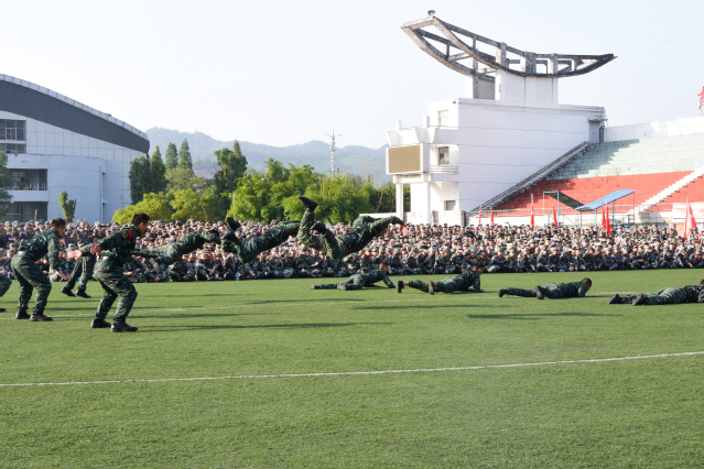 武警宜春支队承训官兵为参训师生做了精彩的科目演示,官兵们的精湛表演,赢得了热烈掌声。
