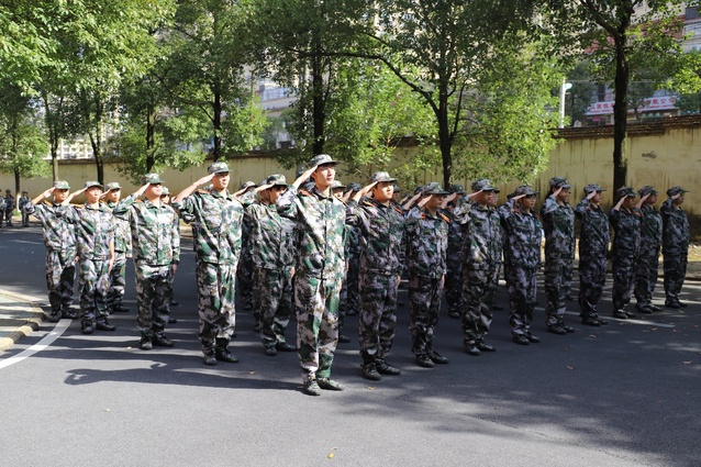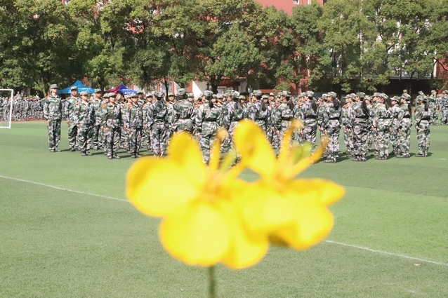 “立正!向左转!向后转……”洪亮的口号声打破了校园内原先的平静,全副军训装的队列成了学校里一道靓丽风景线。同学们士气高昂,眼神中充满着坚定,以饱满的精神状态,全神贯注于每一项动作。古人云:“古之立大事者,不惟有超世之才,亦必有坚贞不拔之志。”在这炎炎烈日之下,他们的汗水淌过背颊,迷彩服逐渐被汗水浸湿,即使如此,同学们依旧岿然不动,严格听从教官的命令。