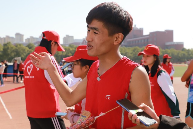 本站讯(理工学院 供稿)彩旗飘扬、鼓声回响,喧嚣的赛场上青春飞扬。11月11日上午,来自理工学院的陈华财同学在普通学生组男子三级跳比赛中凭借11.85米的优异成绩斩获冠军,台上观众掌声雷响,台下同伴为之骄傲。这一刻,他所有努力都化成了感动的泪水。