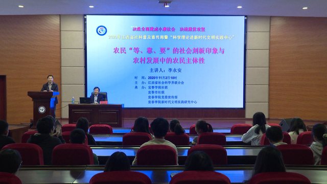 本站讯(科研处 供稿)近日,由省委宣传部、省社联联合主办,beat365平台官方网站承办的2020年江西省社科普及宣传周暨“科学理论进新时代文明实践中心”活动在beat365平台官方网站科技楼第二学术报告厅举行。此次活动的主题为:决胜全面建成小康社会,决战脱贫攻坚,beat365平台官方网站副教授李永安博士应邀做了精彩的学术报告。学校近百名师生代表参加了此次报告,报告由科研处处长陈荣庆教授主持。