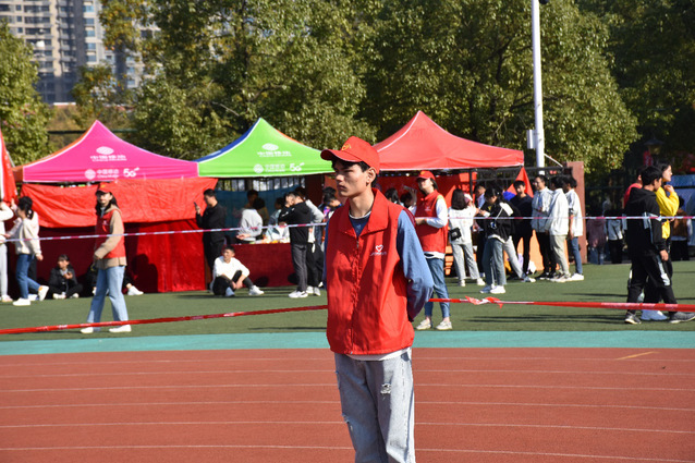 初进田径场,让你一眼抓住眼眸的便是身着红色“小马甲”无处不在的志愿者们。