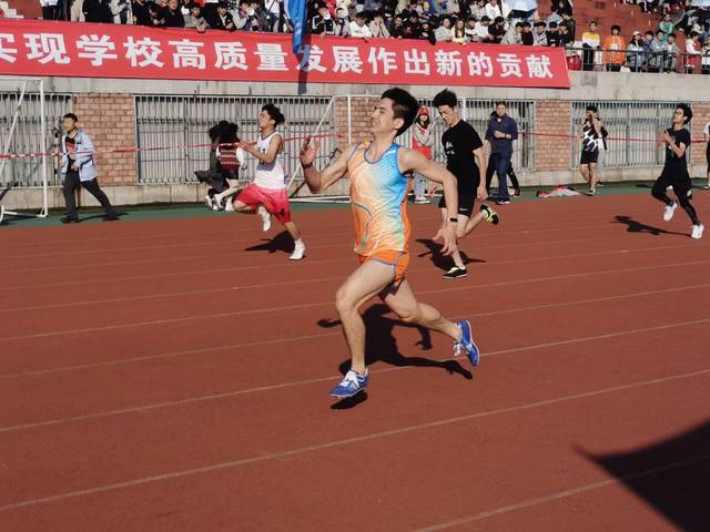 源于热爱,他义无反顾的报名,普通学生组男子100、200、400米等六项体育项目,正如何振宇所言:“兴趣是我们最好的老师,正是对体育的热爱,我选择报名参加运动会并为之努力。从小到大,我就对短跑充满热爱,并积极参加学校组织的运动会,到了大学,我更想在短跑上有更加突出的成绩”。曾经,他因100米负伤黯然退场,但这并不是结束,而是开始,是一场等待,满怀期待的等待,他相信:明年的我一定更优秀,更适合这热血赛场。