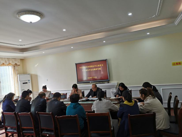 本站讯(外国语学院供稿)为认真传达学习贯彻党的十九届五中全会精神,外国语学院按照上级要求,及时部署相关工作,广泛开展学习活动,分别于11月9日和18日通过党委理论学习中心组、专题党日活动、全院教职工大会等形式,传达学习《中国共产党第十九届中央委员会第四次全体会议公报》、《中共中央关于制定国民经济和社会发展第十四个五年规划和二〇三五年远景目标的建议》。