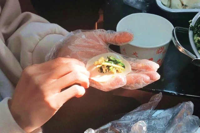 据了解,当天一早学生代表便前往菜市场采购食材交给二食堂一楼、二楼负责人,进而进行食材加工。参与包饺子的学生前往食堂后厨,先由食堂工作人员对其进行包饺子教学,随后便自己动手,尝试包饺子过程中的乐趣,从蘸料、包皮、捏出形状之中,逐渐感受着饮食文化给予的滋养,也在着过程中收获到一项新技能。包饺子时,学生们发挥自己的特长,拿出自家的“独门绝技”,并互相交流,相互教学,包出一个个形态各异的饺子,包好的饺子由食堂工作人员进行烹饪,烹饪完成后便送往二食堂屏幕放映区前。该活动面向学校全体学生,想吃饺子的学生只需给考研的学生写上一张对他们美好祝福的小卡片即可,如果吃到红枣馅的饺子就可以领取特殊的礼品一份,学生们纷纷参与其中,很快包好的饺子便被一扫而空,获得神秘礼物的七位学生也由此诞生。