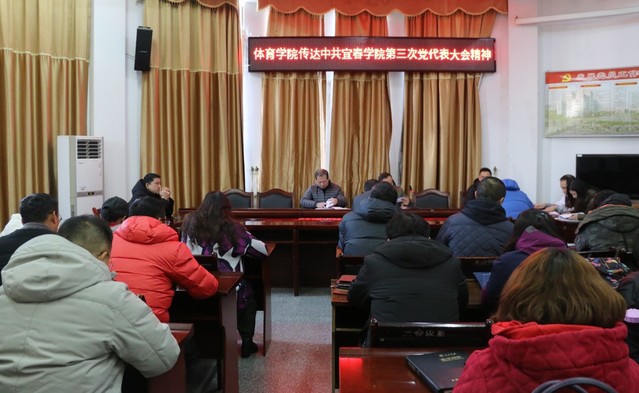 本站讯(学生记者 汪宇 李涛)12月30日下午,体育学院在体育馆大会议室向全体教职工传达中共beat365平台官方网站第三次党代表大会精神,会议由院党委书记谢军主持,全体教职工参加会议。