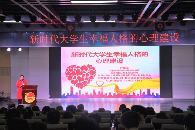 讲座伊始,辅导员晏细元就化生学院学生干部思想融入、心理建设、幸福提升等方面作了简单介绍,并谈到了幸福人格心理建设的重要性。讲座上,主讲教师严蔷薇围绕“时代与心理健康的重要性、幸福在各个层面作用及心理健康标准基本要求”三个方面展开阐述,充分指出了实现中国梦的新时代目标,深刻诠释了幸福在各层面深入人心的重要作用,全面提出了心理建设的基本要求。宣讲时严蔷薇老师与台下学生频繁互动,这十分有助于学生们领悟心理建设在人生道路上的重要性。讲座期间,严蔷薇老师就大学生心理现状进行了阐述,她全面深刻地分析了大学生负面情绪产生的原因,并提出了很多切实可行的解决方案。