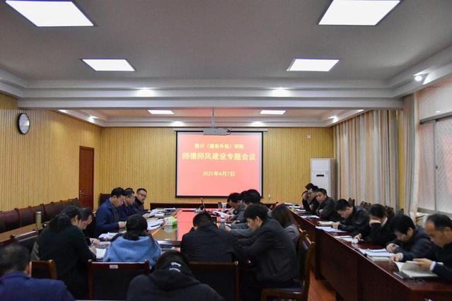 本站讯(学生记者 喻轮奇 陈林培)为加强学院师德建设,弘扬优良师风,4月7日下午,数计(服务外包)学院在会议室召开师德师风建设专题会议。该院党政班子成员甘诚智、胡红武、何渊仁、谢雪军、臧爱彬出席会议,各科室负责人、系主任、各党支部书记、专业负责人及教研室主任等参加了会议。会议由院长胡红武主持。