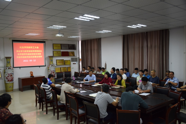 本站讯(化生学院 供稿) 5月12日下午,化生学院召开教职工大会,传达学习教育部教师思想政治与和师德师风建设经验交流暨师德专题教育启动部署会精神。该院党委书记黄良辉、院长郭孟萍、院党委副书记陶华蕾、副院长张文彬以及全体教职工参加了此次会议,会议由黄良辉主持。