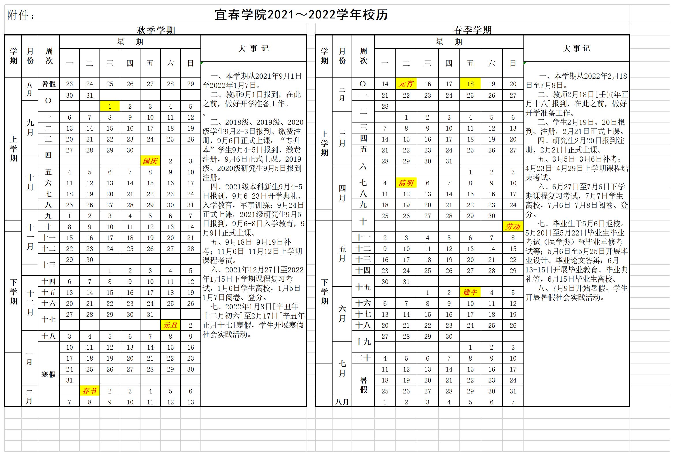 2022年2月18日至7月8日,共20周。其中上课时间16周,实践教学周1~2周,期末复习考试、机动时间8天。
