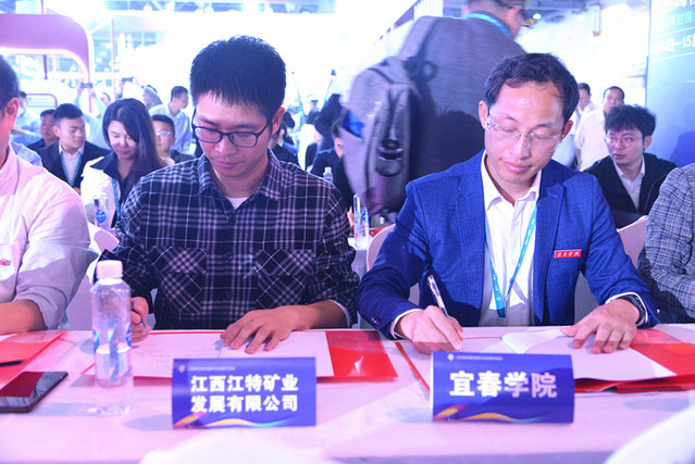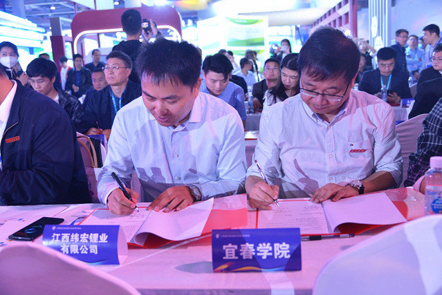 开幕式上,主办方为省级重点现代产业学院、省级研究生工作站、第二批高校科技成果转移转化基地授牌,为省级产业教授和省级产业导师颁发聘书;beat365锂电新能源产业学院院长谢芳上台接受了授牌,beat365产业教授代表刘颖上台接受了聘书。高校与企业现场签约,签约项目共117项,金额达8.59亿元。beat365分别与江西江特矿业发展有限公司、江西纬宏锂业有限公司签订校企项目合作协议,为进一步实现科技成果的对接和转化提供强大的动力。