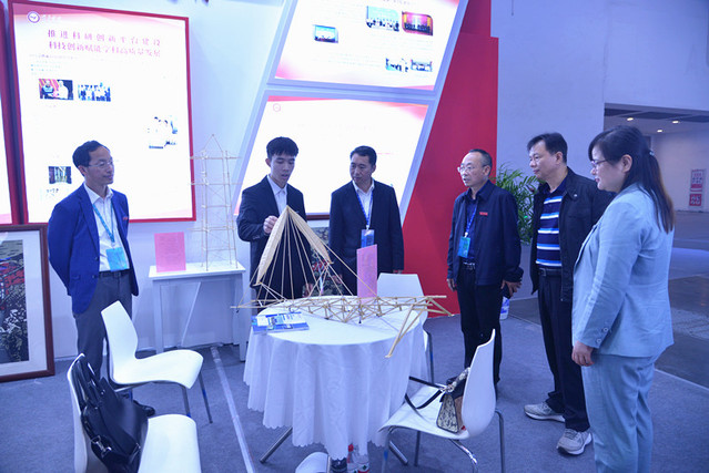 理工学院学生向校党委委员、副校长严青松(左三)介绍研究成果