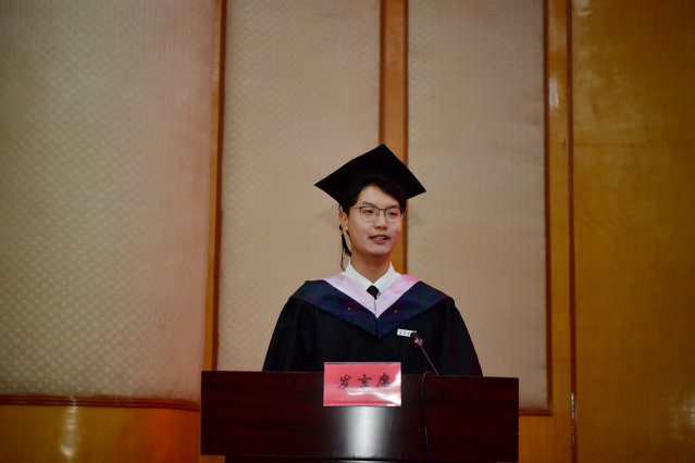 典礼上,研究生毕业生代表、本科生毕业生代表分别发言,表达了对母校的依依不舍和对老师们的感恩之情;非毕业生代表向学长学姐们致敬,祝福他们一帆风顺、前程似锦;教师代表鼓励毕业生们时刻牢记“厚德、尚能、博学、笃行”的校训,早日成为社会主义现代化建设中可堪大用、能担大任的栋梁之才。