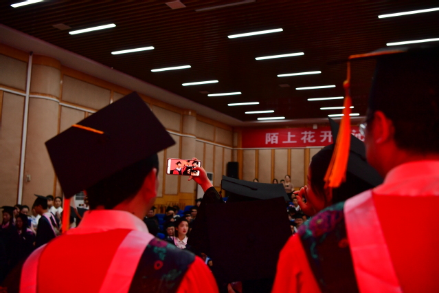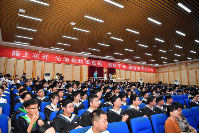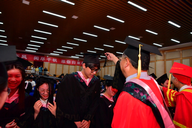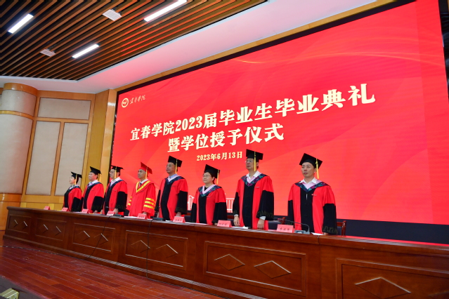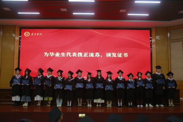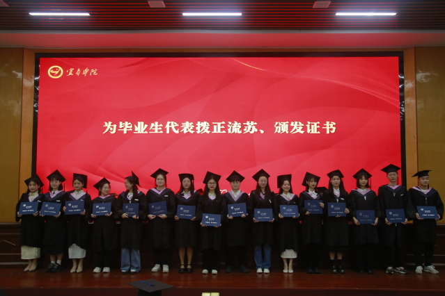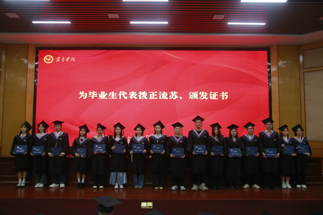 主席台上,校领导为同学们颁发证书、拨正流苏,将学位帽上的帽穗从右边拨到左边,象征着从学生变为校友。毕业生们将从母校出发,踏上新的人生征途。