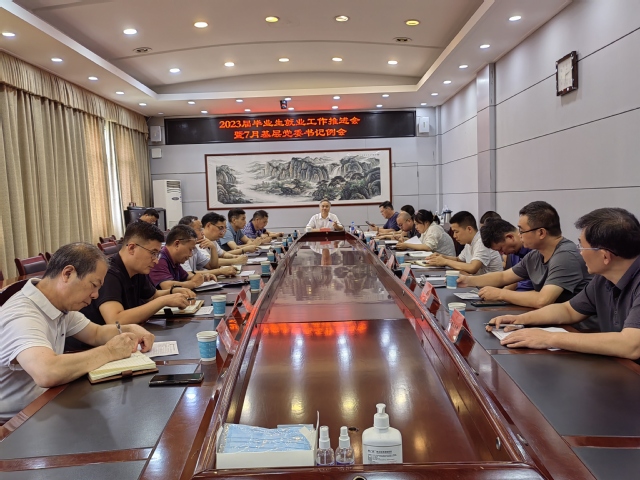 本站讯(记者 何杰)7月23日,校党委书记、校长曾晓春在办公楼第二会议室分别主持召开了研究生就业工作调度会、2023届毕业生就业工作第三次推进会暨7月基层党委书记例会。副校长梅光泉出席会议,党政办、招生就业处、研究生处负责同志、各教学院党委书记参会。