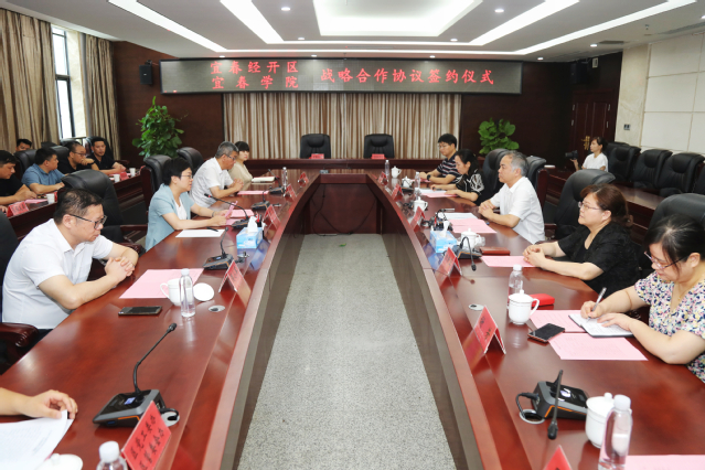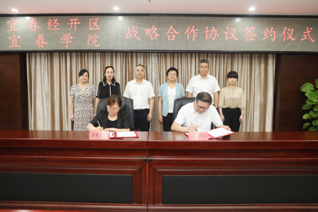 本站讯(特约通讯员 侯爵)7月28日,beat365与宜春经开区举行战略合作协议签约仪式。校党委书记、校长曾晓春,宜春经开区党工委书记解鸳分别致辞并见证签约。校党委委员、副校长余新卫,区党工委副书记周小军,区党工委副书记、管委会主任何敏,区党工委委员、机关党委专职副书记(党群工作部部长)彭凤出席签约会,学校相关部门负责人参加会议,会议由何敏主持。