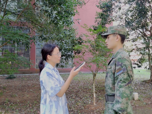 今年军训过程中,学校组建了一支由退役大学生担任的教官队伍。作为一名拥有两年从军经历的退役大学生,秉持着“一日为军人,终生为军人”的信念,在辅导员老师与前辈教官的鼓励下,唐轩毅然加入到了学生教官的队伍中。