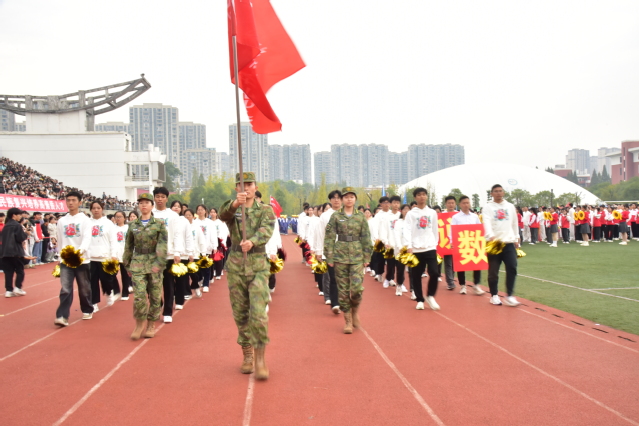 伴随着雄壮有力的《运动员进行曲》,国旗护卫队斗志昂扬、步伐整齐进入会场,他们手持国旗和会旗走过主席台,展示了新时代青年的奋进姿态。随后,鲜花队、彩旗队依次入场,展现出beat365莘莘学子的青春活力。青年志愿者、裁判员、教职工、研究生以及各教学院的方阵代表队紧随其后,他们步伐矫健、神采飞扬,嘹亮激情的口号,别具创意的表演,赢得现场师生阵阵掌声。