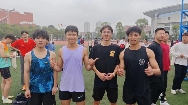 训练并不轻松,汗水与疼痛是他们的日常。在校运会备战期间,“一次大力量——比如深蹲、卧推、半蹲,一次小力量——比如弹力带、小肌群的一些训练,两次速耐......”邹晶如数家珍地说着。太阳在操场上东升西落,体育馆外四季的光阴悄无声息地轮替,刻苦的训练日复一日。她笑着说:“我们的训练计划都比较专业,对自己的要求就是不偷懒吧,按要求完成计划就好了。”