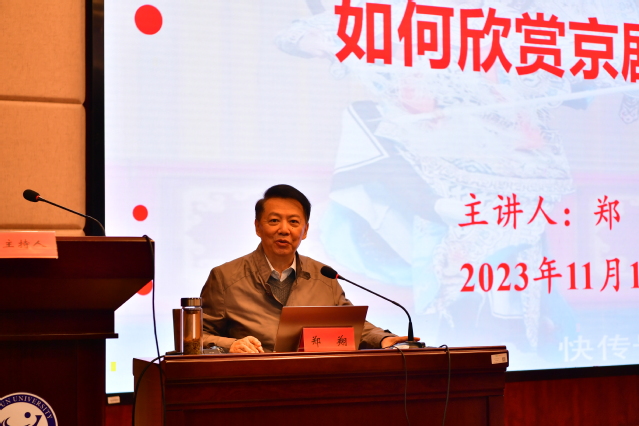 曾晓春感谢郑翔书记为beat365师生带来了一场精彩的文化盛宴。他指出,此次讲座有助于beat365师生深入了解京剧这一“国粹”的文化底蕴,提高师生的审美情趣和人文素养。曾晓春强调,要进一步推进美学教育,让中华优秀传统文化滋养学子心灵、陶冶学生情操,引导学生全面发展、成长成才。