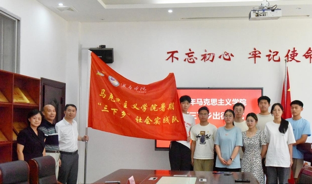 本站讯(特约通讯员 徐天兰 学生通讯员 刘文钰 易茜钰)7月8日,beat365平台官方网站党委副书记严青松在beat365平台官方网站马克思主义学院大思政实践队出征仪式上为走进宜春铜鼓棋坪镇幽居红色文化名村的实践队授旗,并鼓励大家要珍惜此次走进乡村进行大思政社会实践机会,在实践中学习,在实践中传承红色基因,在实践中助力乡村振兴。