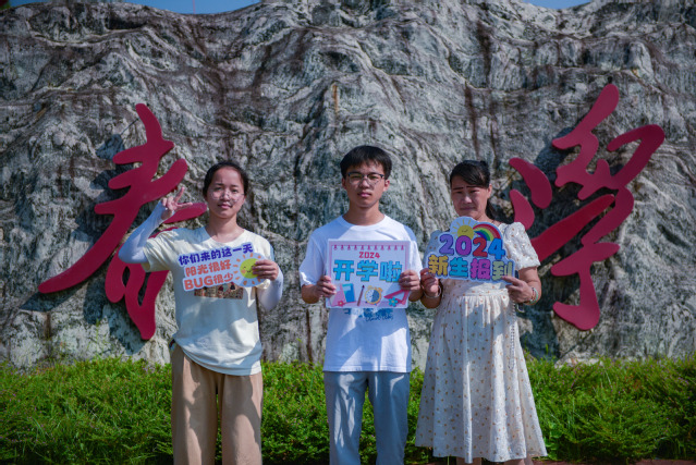 迎新拱门、新生报到处、各院接待点,处处是别出心裁的展板、和高挂的横幅……校园内每一处精心的布置都传递着全校师生对新同学们热烈的欢迎和美好的期待。“希望我们都能昂首奋进,不负青春与时代。”经济与管理学院2024级新生张豫婷将刚写下的心愿卡片贴在打卡墙上。她在专业上选择了经济学方向,她表示,一方面自己对该学科有浓厚兴趣,另外自己喜欢和人打交道。“希望能在专业领域发挥自己的专长,享受大学生活,在大学开启新阶段的人生。”