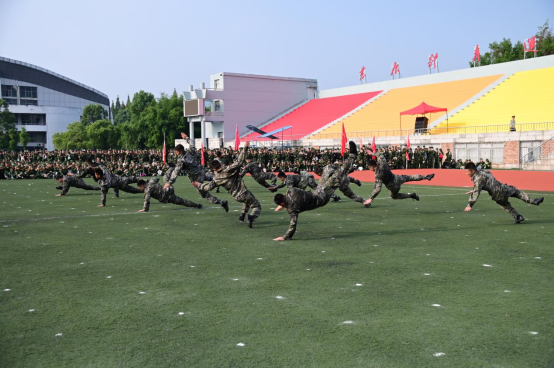 典礼开始后,由武警官兵进行了暖场表演。全体师生观看了武警宜春支队承训官兵队列与军体拳表演,官兵们整齐划一的动作、铿锵有力的步伐、刚劲有力的军体拳展示,赢得了在场师生的阵阵掌声和喝彩。