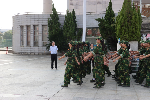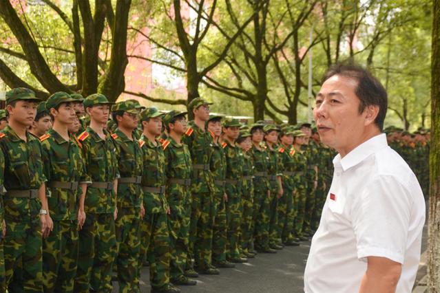 李建军慰问了带训教官,并对他们表示由衷的感谢。随后,他巡视了新生军训的训练情况,对其训练成果给予了肯定与赞扬,并借此机会对同学们提出三点期望:一是珍惜“军事化”管理,服从命令,听从指挥,遵守纪律;二是珍惜军训的宝贵机会,刻苦训练,锻炼意志,增长才干;三是珍惜集体荣誉,团结协作,展现优良作风,争取优异成绩,上好“大学第一课”。