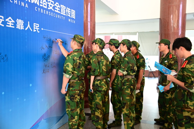 活动现场,师生们在签名墙上签下自己的名字,并观看了网络安全教育知识宣传展板。